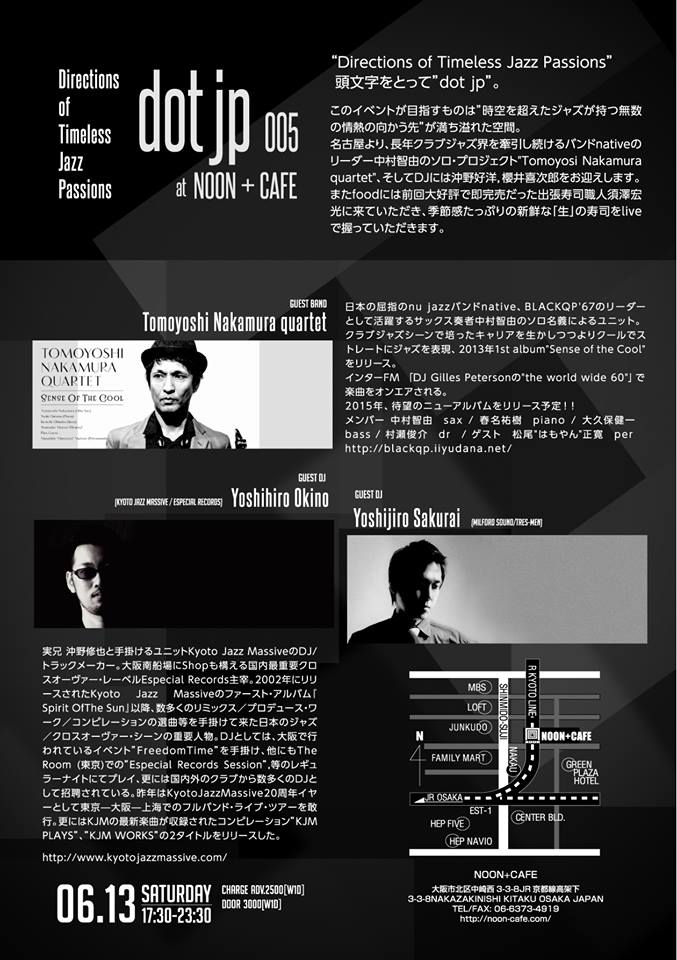 今度の土曜日6月13日、大阪noon+cafeで開催のイベント「dot jp 005」に出演します!!