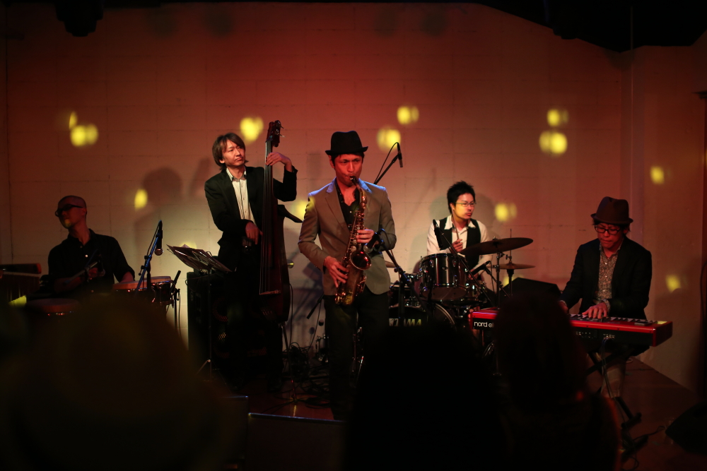 スタンディングのクラブイベントでがっつり踊ってもらえる中村智由quartetの演奏になりました。