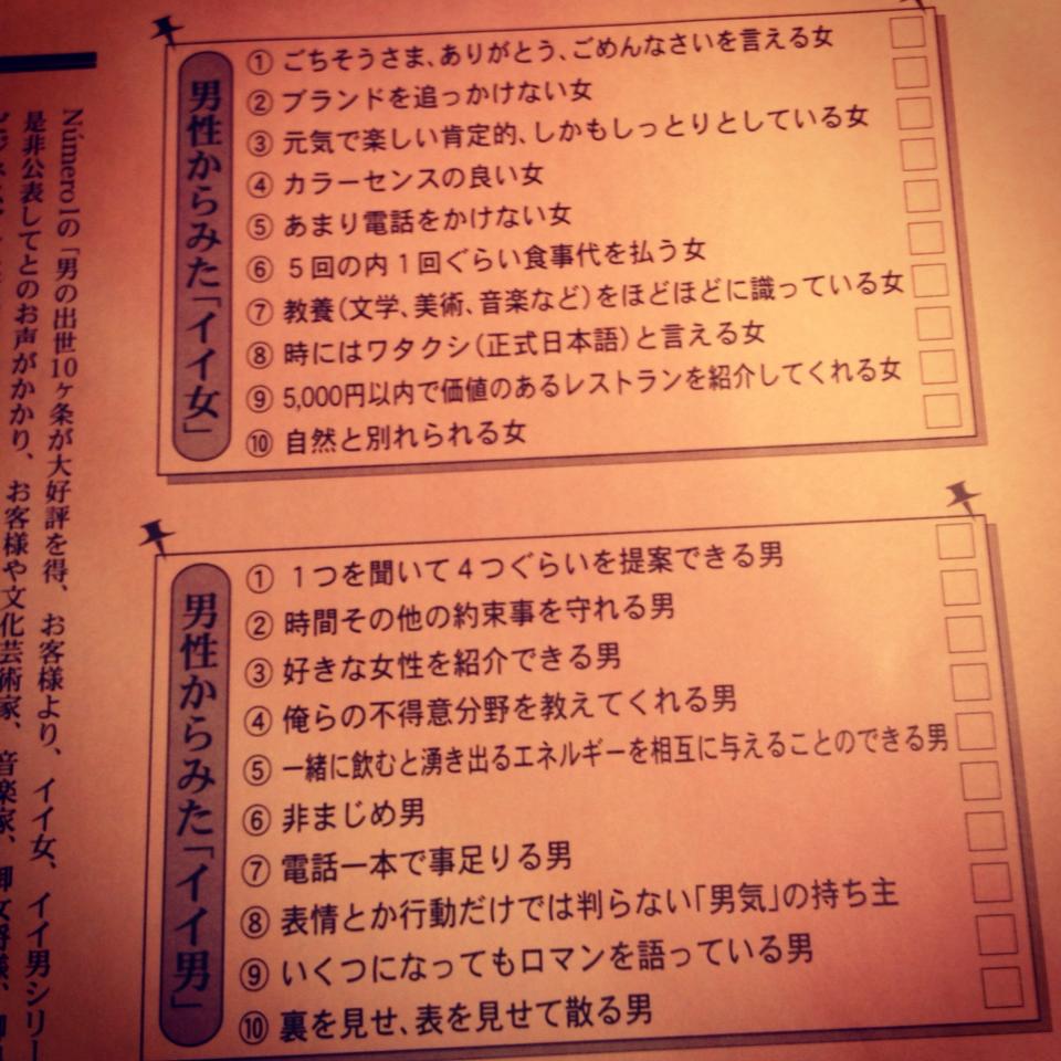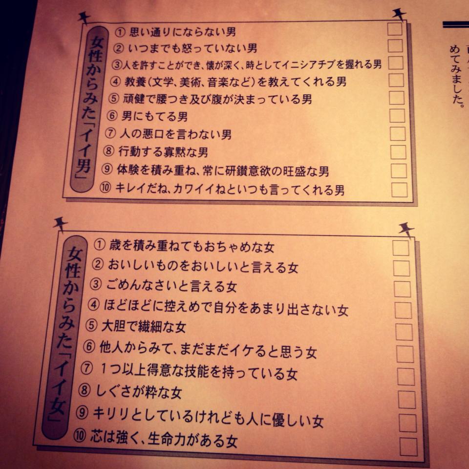 「イイ女」「イイ男」セルフチェックシート